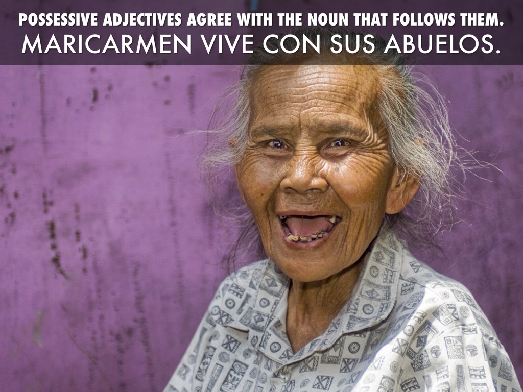 POSSESSIVE ADJECTIVES AGREE WITH THE NOUN THAT FOLLOWS THEM.