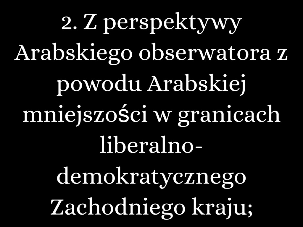 2. Z perspektywy Arabskiego obserwatora z powodu Arabskiej mniejszości w granicach liberalno-demokratycznego Zachodniego kraju;