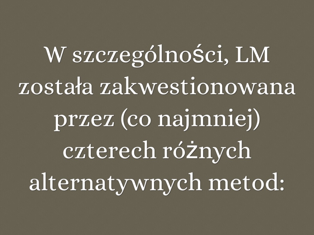 W szczególności, LM została zakwestionowana przez (co najmniej) czterech różnych alternatywnych metod: