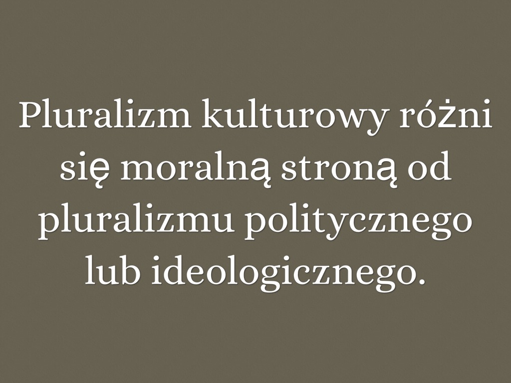 Pluralizm kulturowy różni się moralną stroną od pluralizmu politycznego lub ideologicznego.