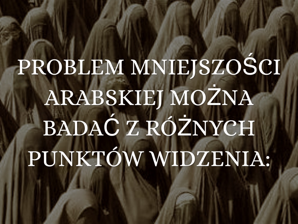 PROBLEM MNIEJSZOŚCI ARABSKIEJ MOŻNA BADAĆ Z RÓŻNYCH PUNKTÓW WIDZENIA: