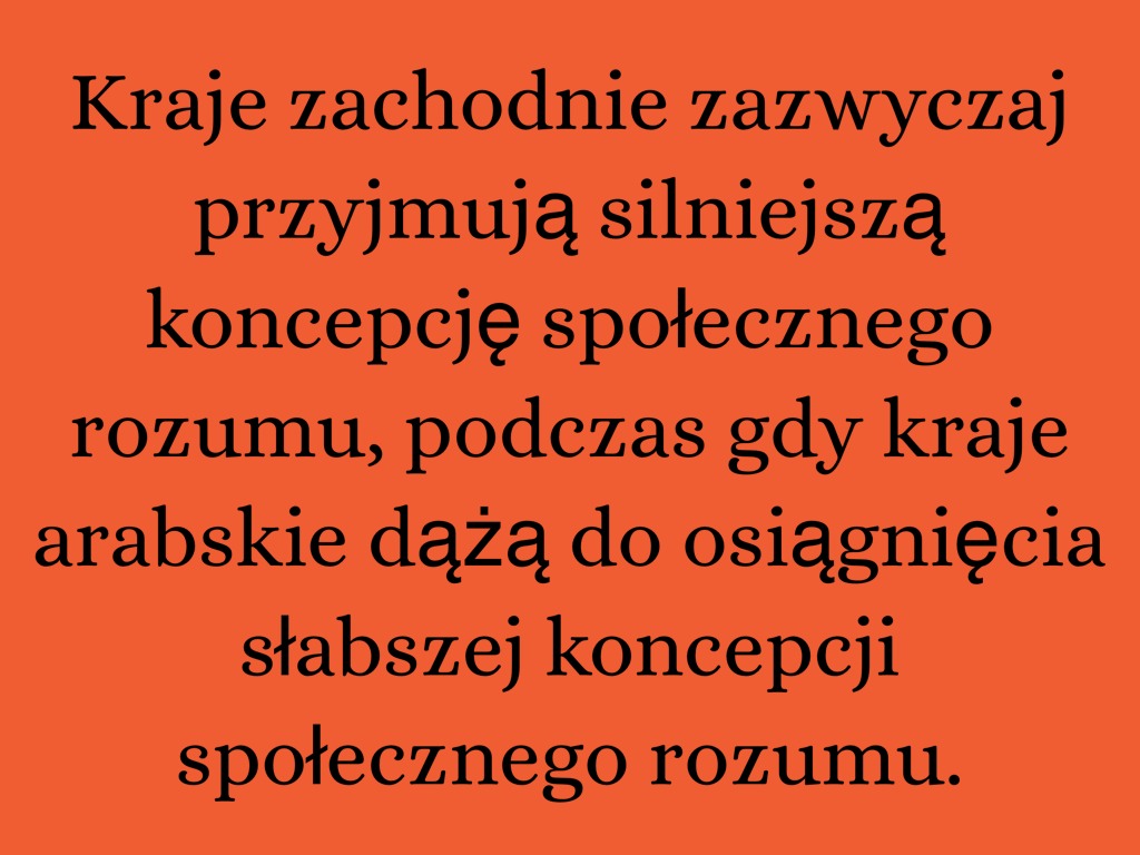 Kraje zachodnie zazwyczaj przyjmują silniejszą koncepcję społecznego rozumu, podczas gdy kraje arabskie dążą do osiągnięcia słabszej koncepcji społecznego rozumu.