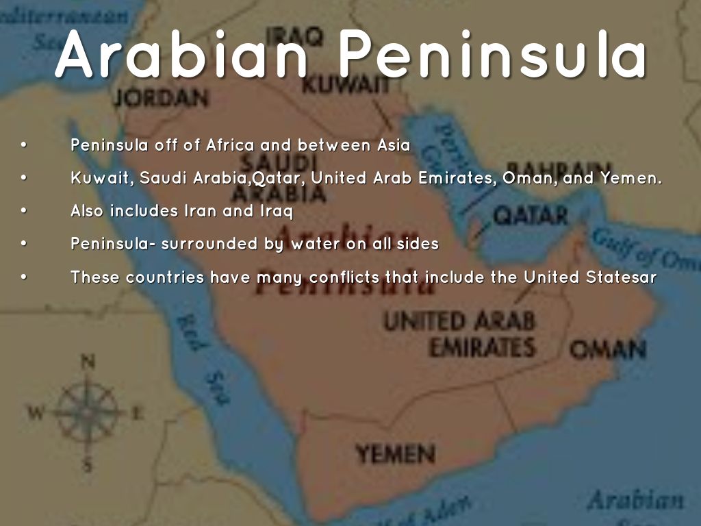 Includes all of the countries in the Arabian Peninsula, plus Iran and Iraq