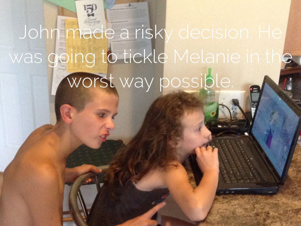 John made a risky decision. He was going to tickle Melanie in the worst way possible.