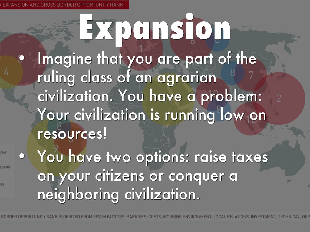 • Imagine that you are part of the ruling class of an agrarian civilization. You have a problem: Your civilization is running low on resources!
