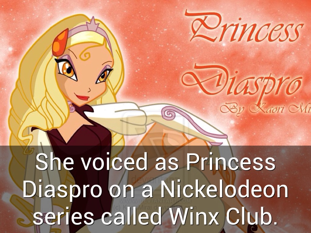 She voiced as Princess Diaspro on a Nickelodeon series called Winx Club.