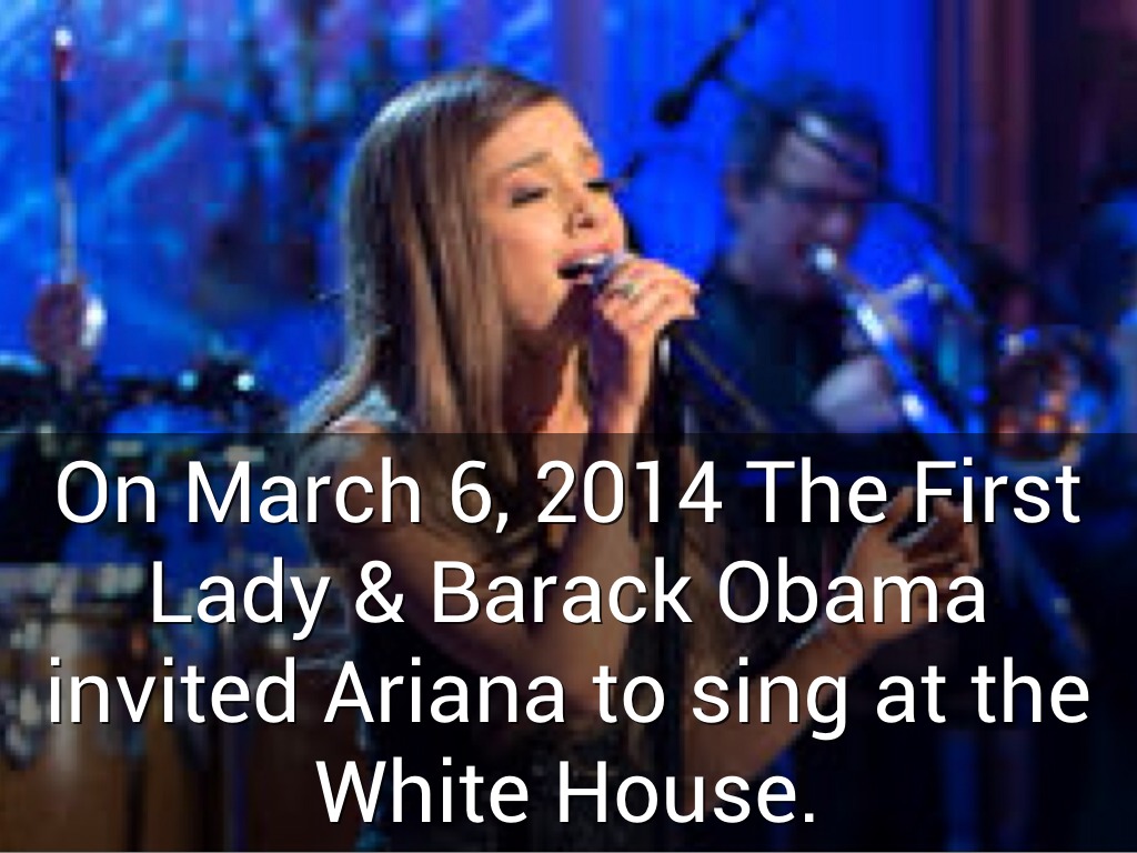 On March 6, 2014 The First Lady & Barack Obama invited Ariana to sing at the White House.