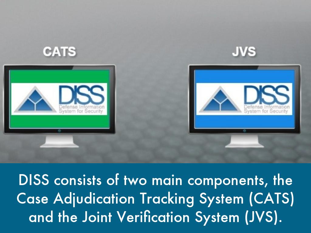 DISS consists of two main components, the Case Adjudication Tracking System (CATS) and the Joint Verification System (JVS).