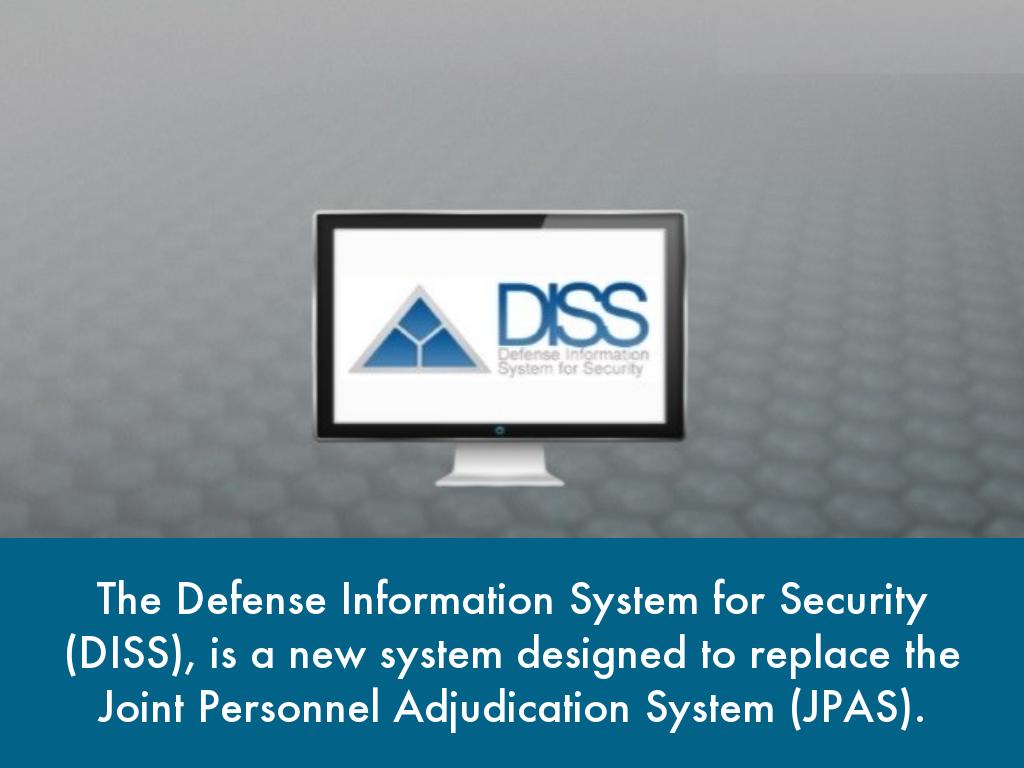 The Defense Information System for Security (DISS), is a new system designed to replace the Joint Personnel Adjudication System (JPAS).