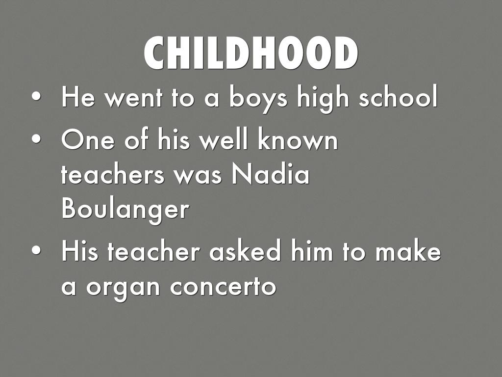 One of his well known teachers was Nadia Boulanger