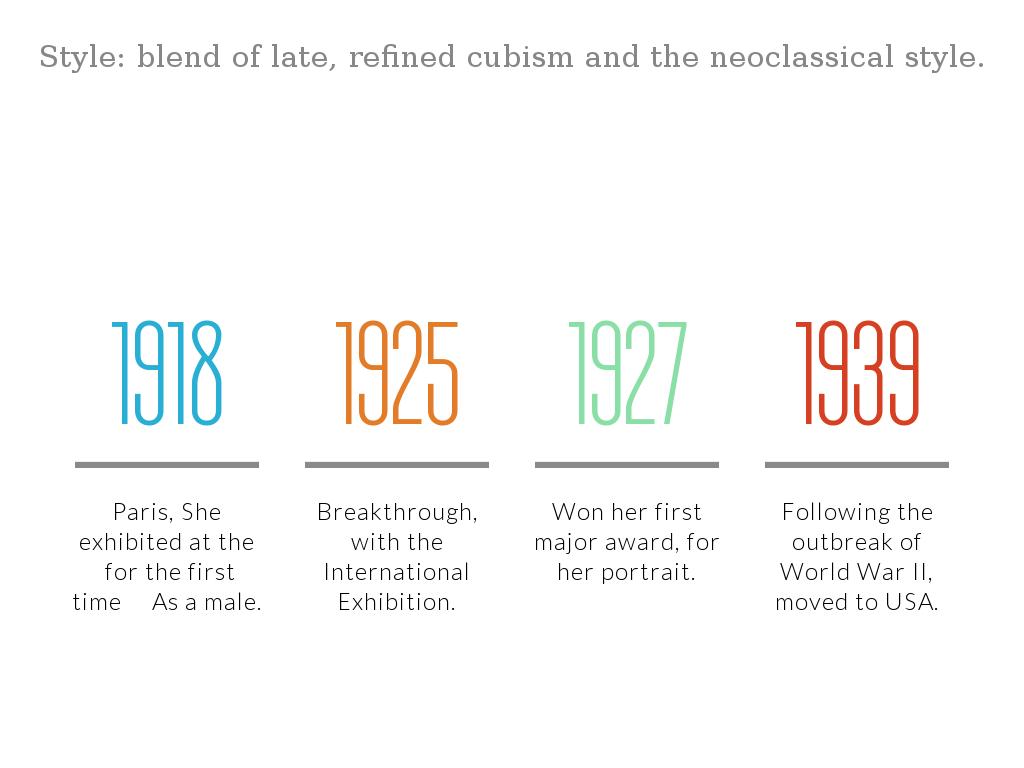 Style: blend of late, refined cubism and the neoclassical style.