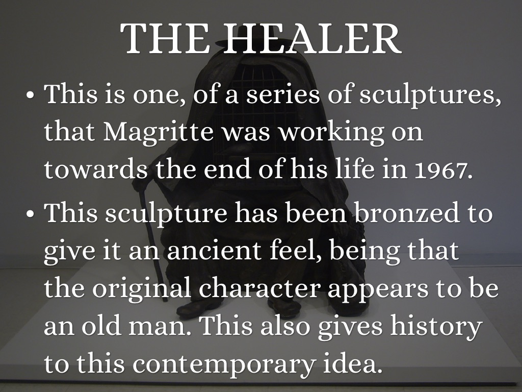 This is one, of a series of sculptures, that Magritte was working on towards the end of his life in 1967.