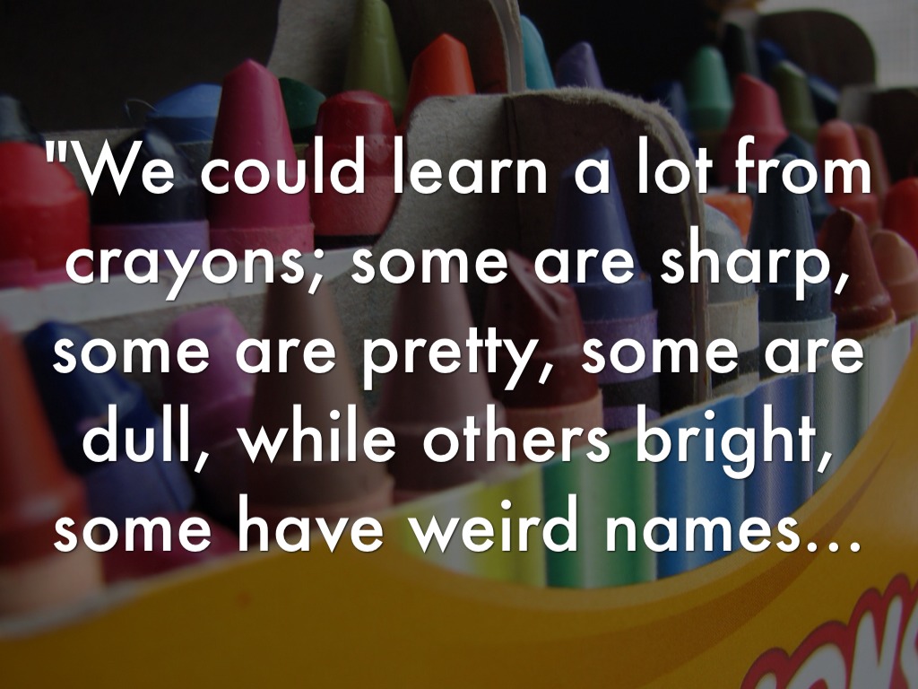 "We could learn a lot from crayons; some are sharp, some are pretty, some are dull, while others bright, some have weird names...