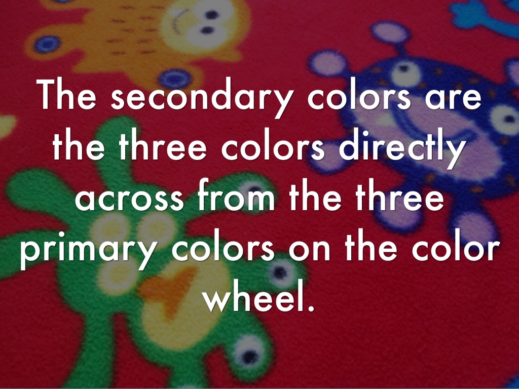 The secondary colors are the three colors directly across from the three primary colors on the color wheel.