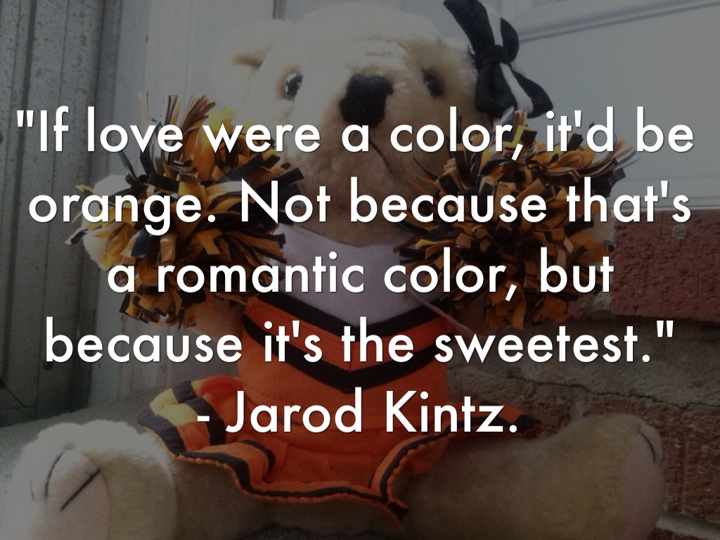 "If love were a color, it'd be orange. Not because that's a romantic color, but because it's the sweetest."