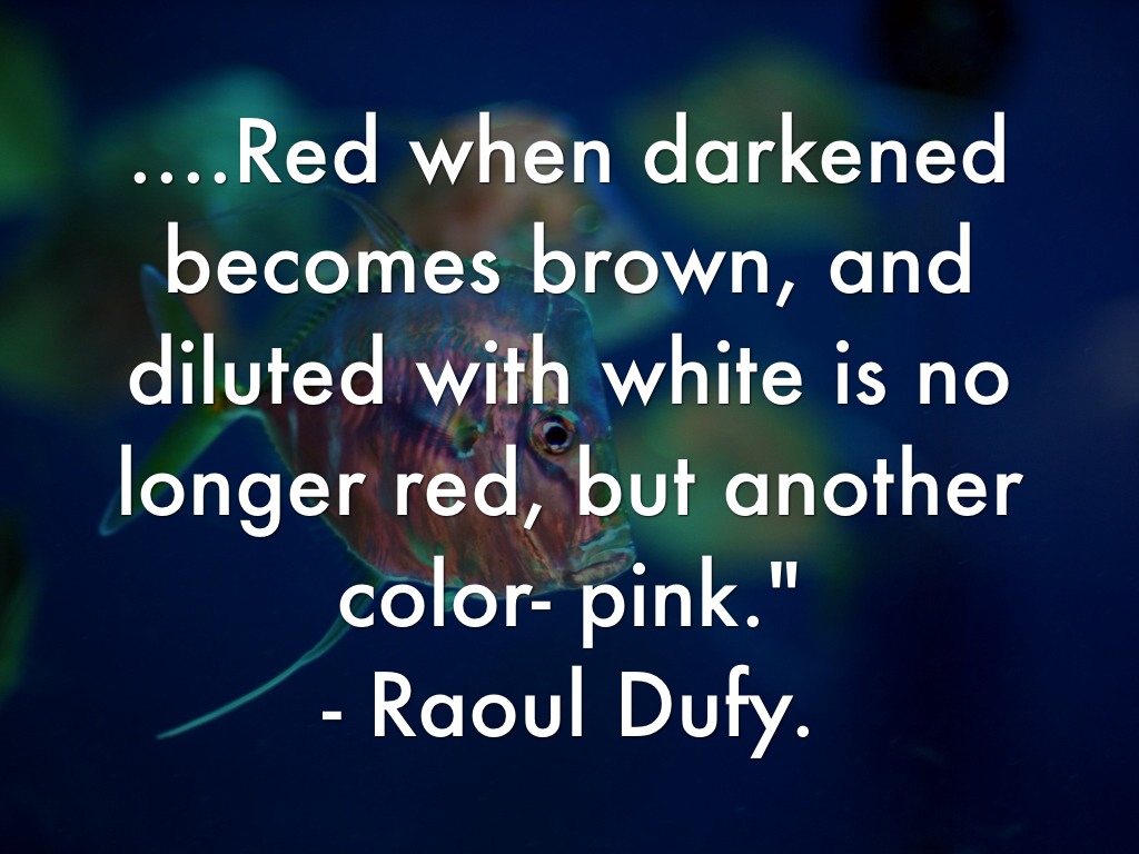 ....Red when darkened becomes brown, and diluted with white is no longer red, but another color- pink."