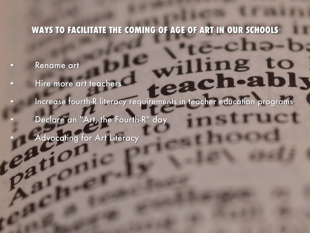 WAYS TO FACILITATE THE COMING OF AGE OF ART IN OUR SCHOOLS
