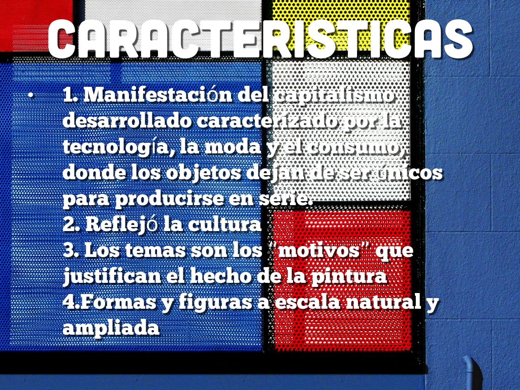 1. Manifestación del capitalismo desarrollado caracterizado por la tecnología, la moda y el consumo, donde los objetos dejan de ser únicos para producirse en serie.