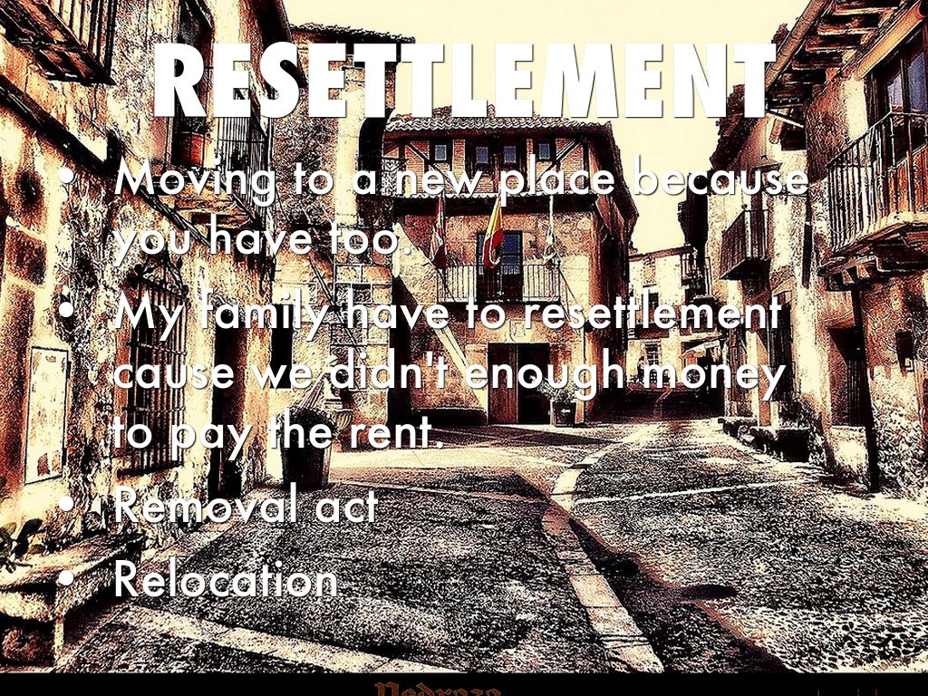 My family have to resettlement cause we didn't enough money to pay the rent.