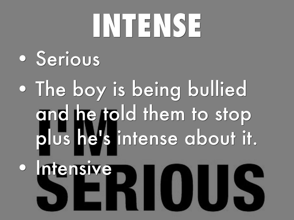 The boy is being bullied and he told them to stop plus he's intense about it.