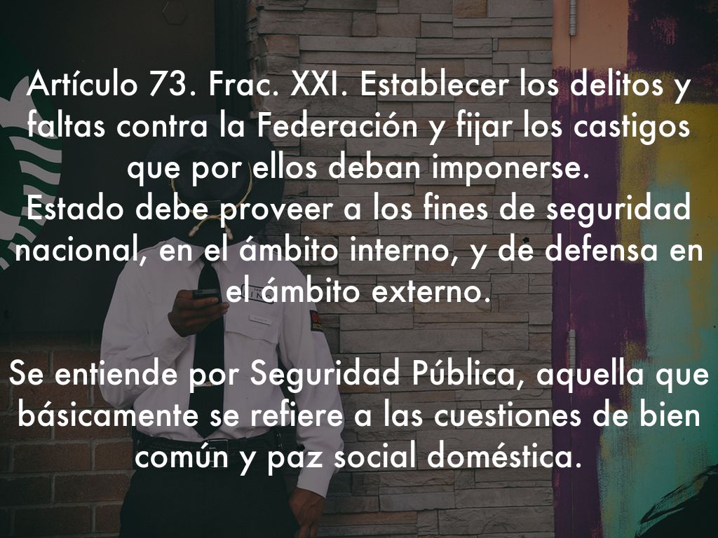 Artículo 73. Frac. XXI. Establecer los delitos y faltas contra la Federación y fijar los castigos que por ellos deban imponerse. Estado debe proveer a los fines de seguridad nacional, en el ámbito interno, y de defensa en el ámbito externo.