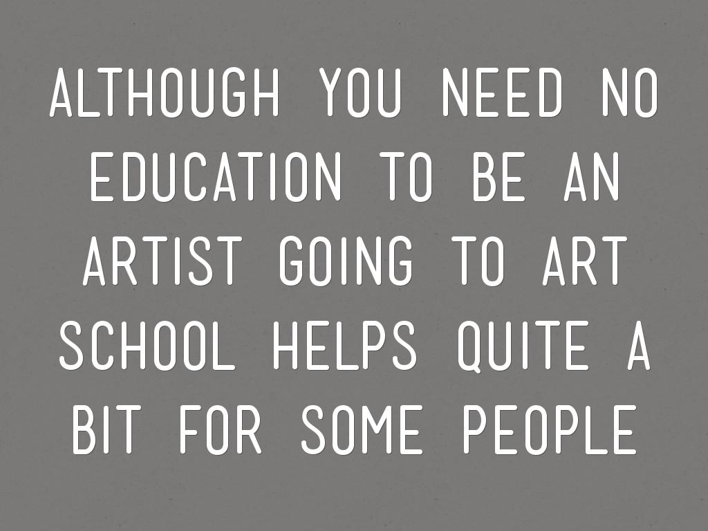 although you need no education to be an artist going to art school helps quite a bit for some people