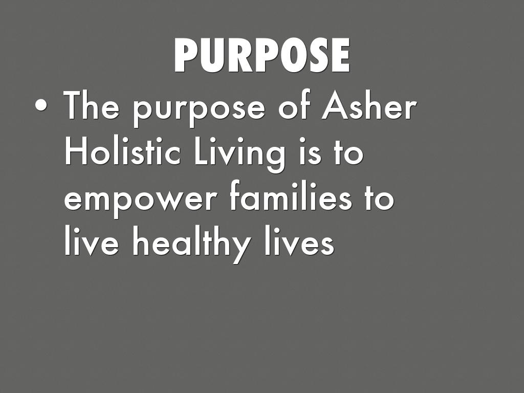 The purpose of Asher Holistic Living is to empower families to live healthy lives
