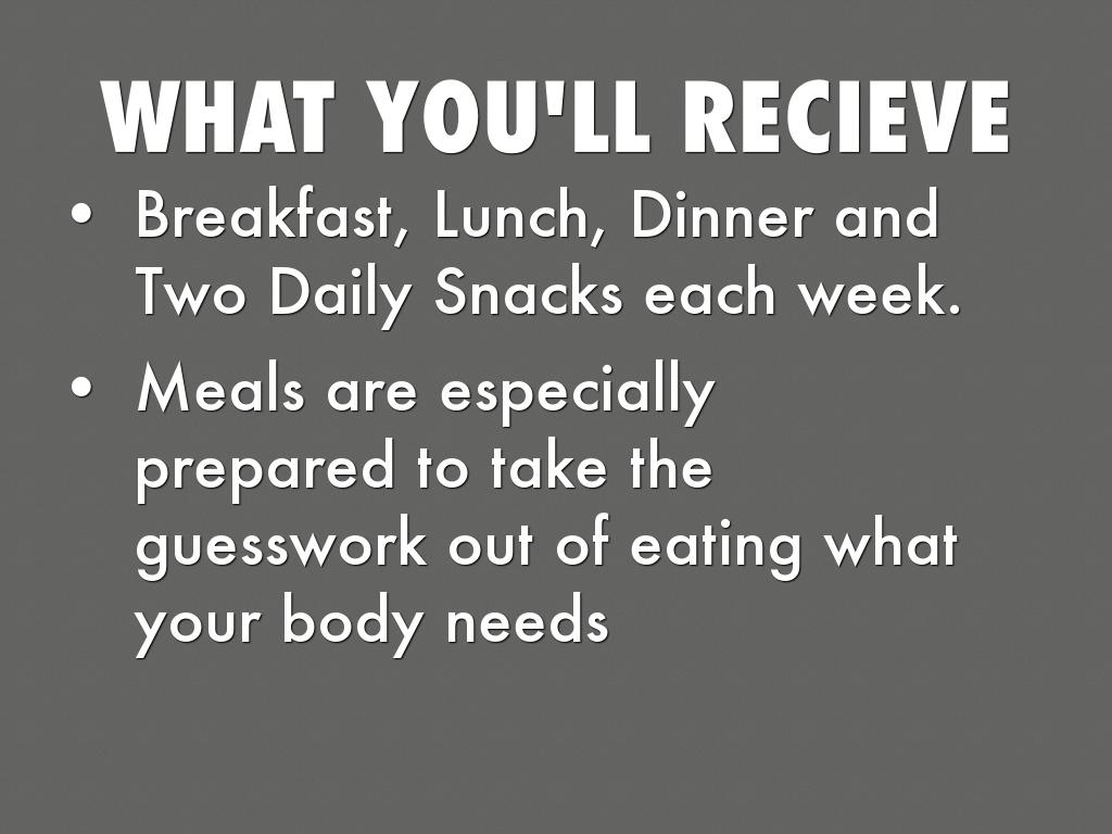 Meals are especially prepared to take the guesswork out of eating what your body needs