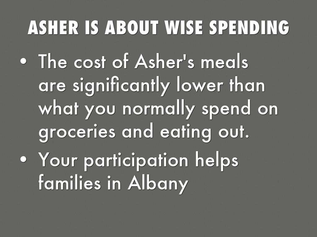 The cost of Asher's meals are significantly lower than what you normally spend on groceries and eating out.
