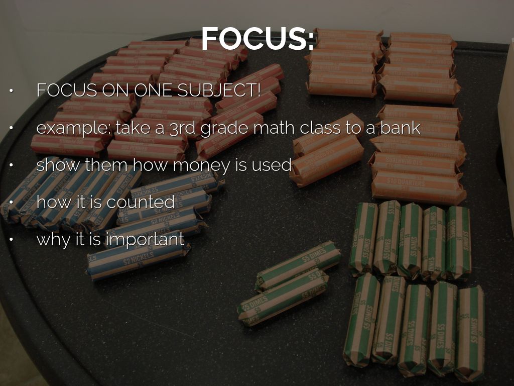 example: take a 3rd grade math class to a bank