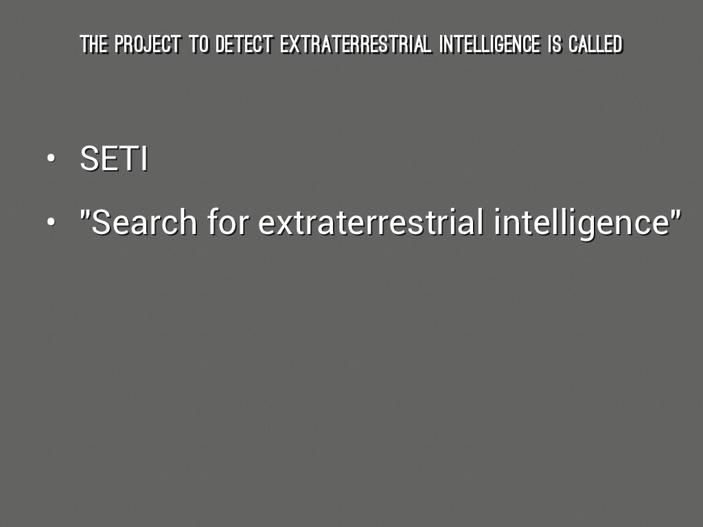 THE PROJECT TO DETECT EXTRATERRESTRIAL INTELLIGENCE IS CALLED