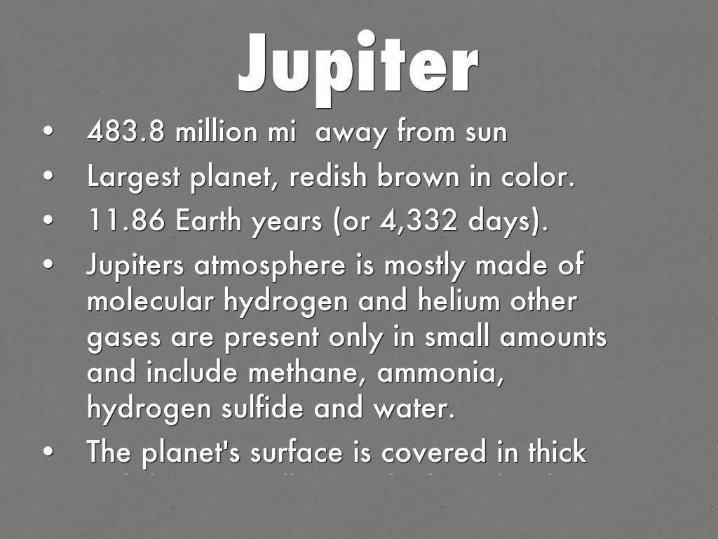 In conclusion Jupiter is the largest planet in our solar system that has a redish brown color and, has so many moon.