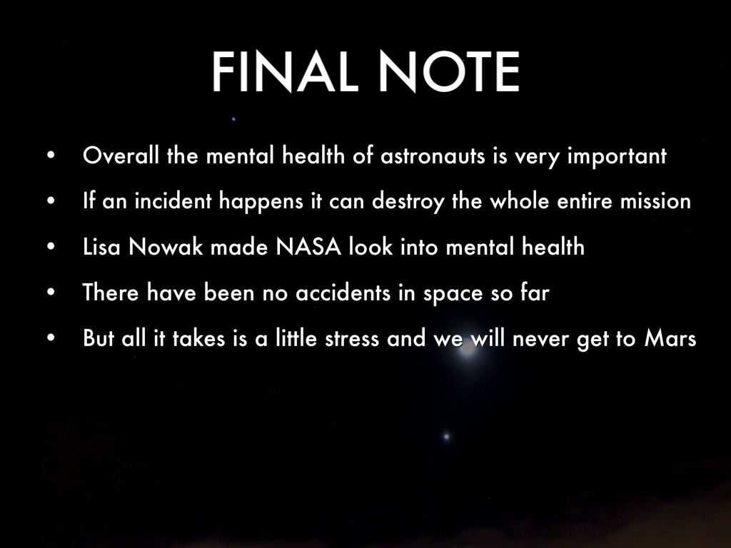 Overall the mental health of astronauts is very important