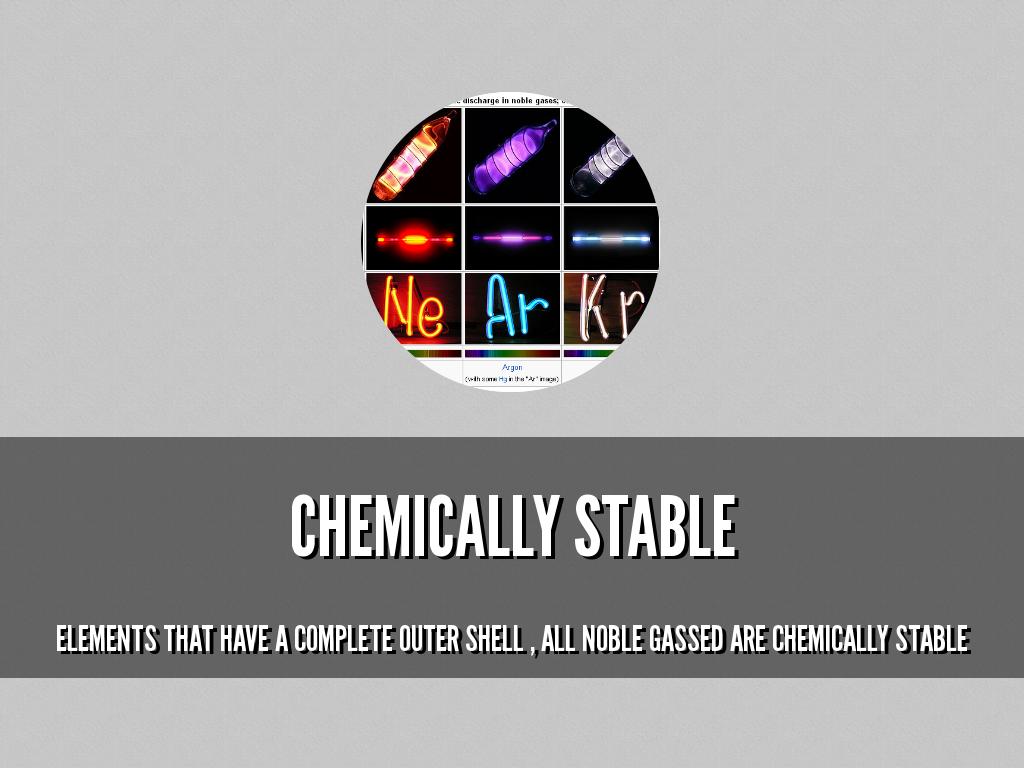 ELEMENTS THAT HAVE A COMPLETE OUTER SHELL , ALL NOBLE GASSED ARE CHEMICALLY STABLE