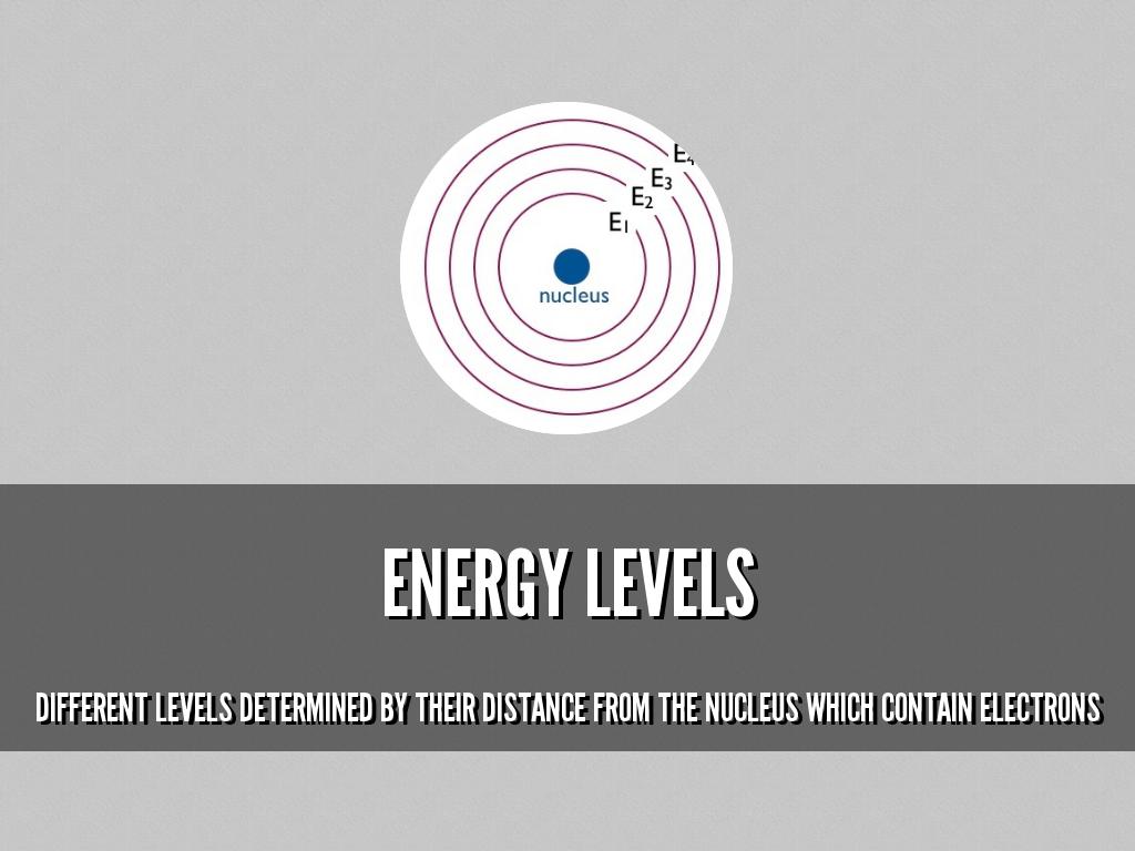 DIFFERENT LEVELS DETERMINED BY THEIR DISTANCE FROM THE NUCLEUS WHICH CONTAIN ELECTRONS