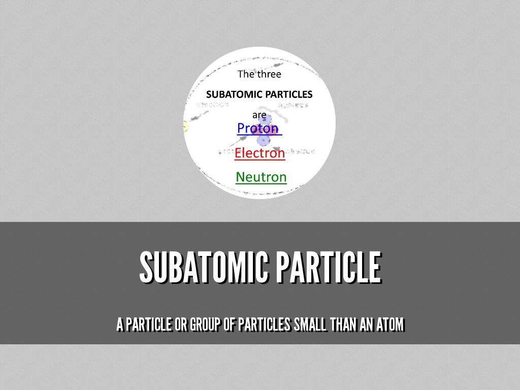 A PARTICLE OR GROUP OF PARTICLES SMALL THAN AN ATOM