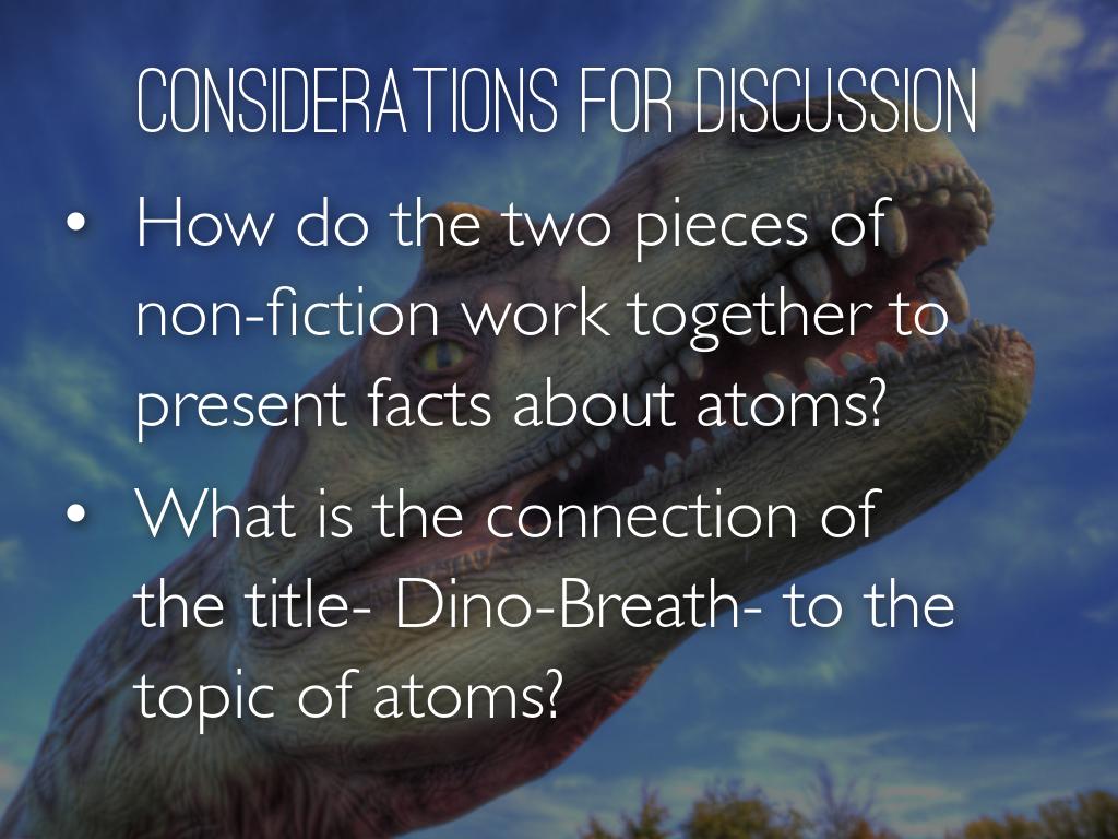 What is the connection of the title- Dino-Breath- to the topic of atoms?