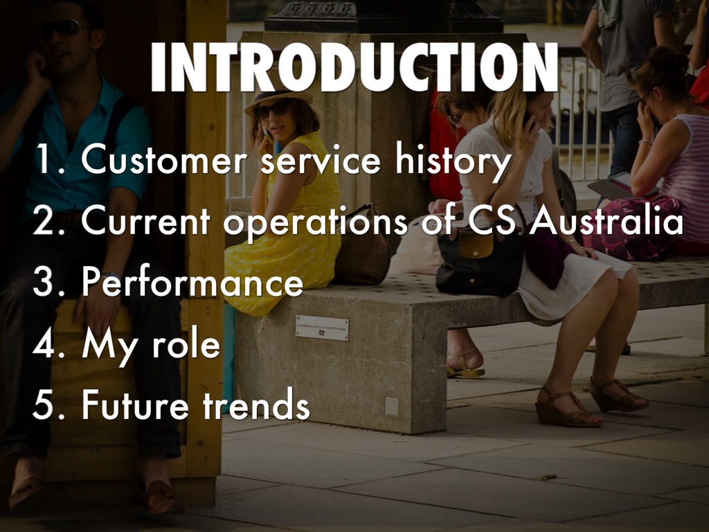 INTO AUSTRALIA'S DELIVERY OF CUSTOMER SERVICE & HISTORY