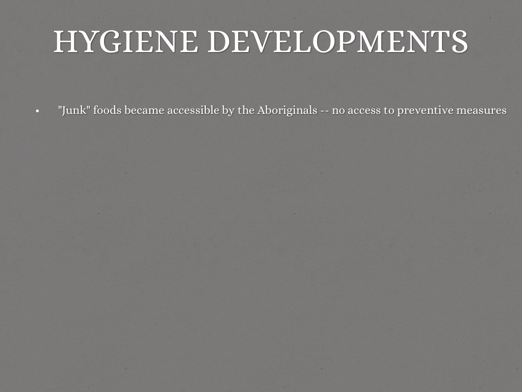• "Junk" foods became accessible by the Aboriginals -- no access to preventive measures