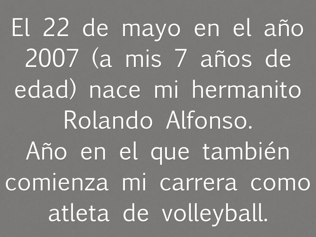 El 22 de mayo en el año 2007 (a mis 7 años de edad) nace mi hermanito Rolando Alfonso.