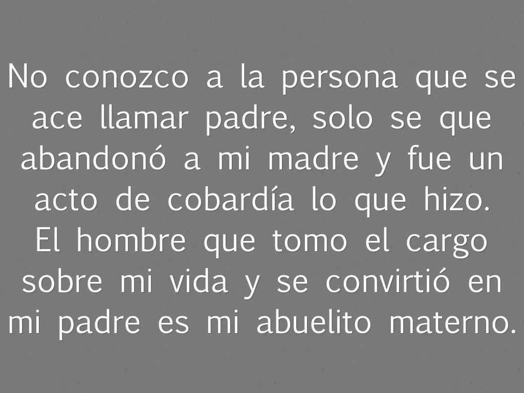 No conozco a la persona que se ace llamar padre, solo se que abandonó a mi madre y fue un acto de cobardía lo que hizo.