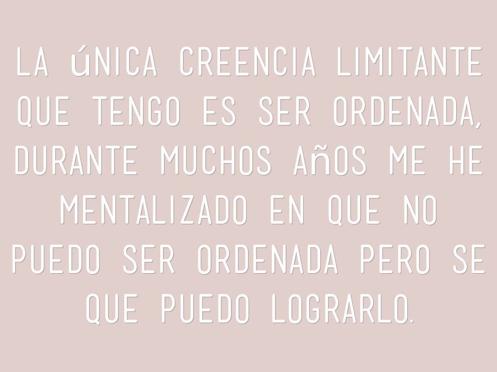 La única creencia limitante que tengo es ser ordenada, durante muchos años me he mentalizado en que no puedo ser ordenada pero se que puedo lograrlo.