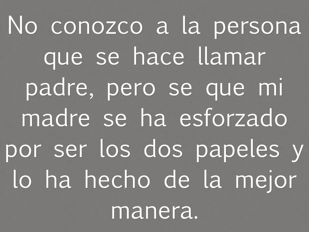 No conozco a la persona que se hace llamar padre, pero se que mi madre se ha esforzado por ser los dos papeles y lo ha hecho de la mejor manera.