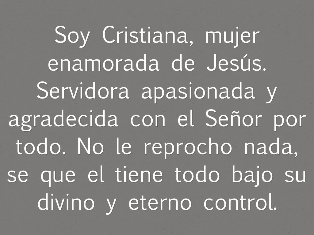 Servidora apasionada y agradecida con el Señor por todo. No le reprocho nada, se que el tiene todo bajo su divino y eterno control.