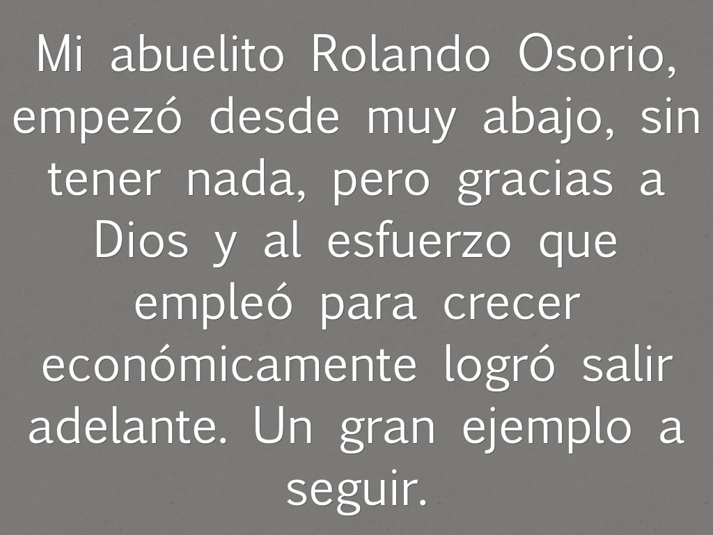 Mi abuelito Rolando Osorio, empezó desde muy abajo, sin tener nada, pero gracias a Dios y al esfuerzo que empleó para crecer económicamente logró salir adelante. Un gran ejemplo a seguir.
