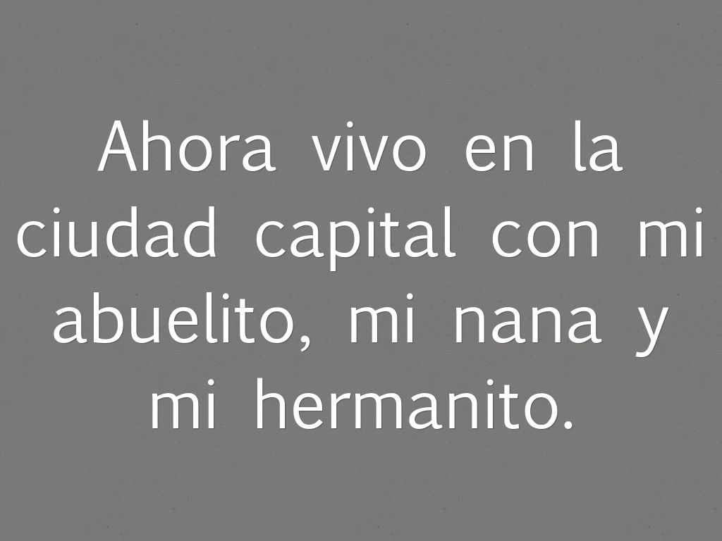 Ahora vivo en la ciudad capital con mi abuelito, mi nana y mi hermanito.