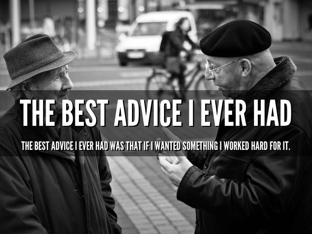 THE BEST ADVICE I EVER HAD WAS THAT IF I WANTED SOMETHING I WORKED HARD FOR IT.