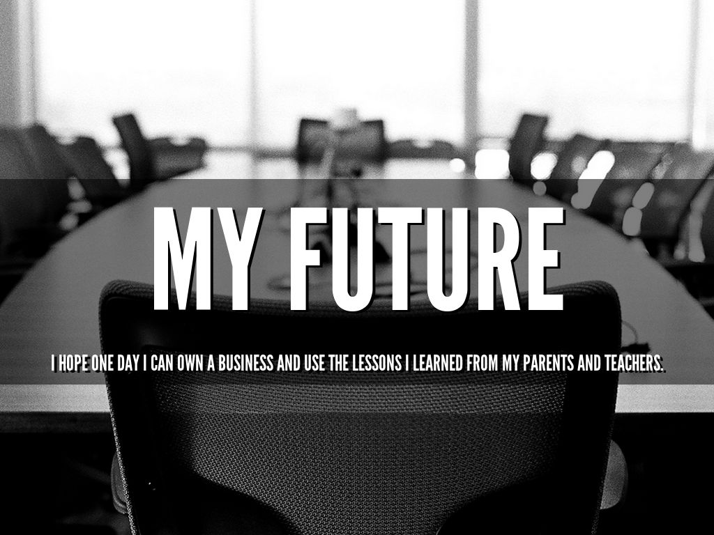 I HOPE ONE DAY I CAN OWN A BUSINESS AND USE THE LESSONS I LEARNED FROM MY PARENTS AND TEACHERS.