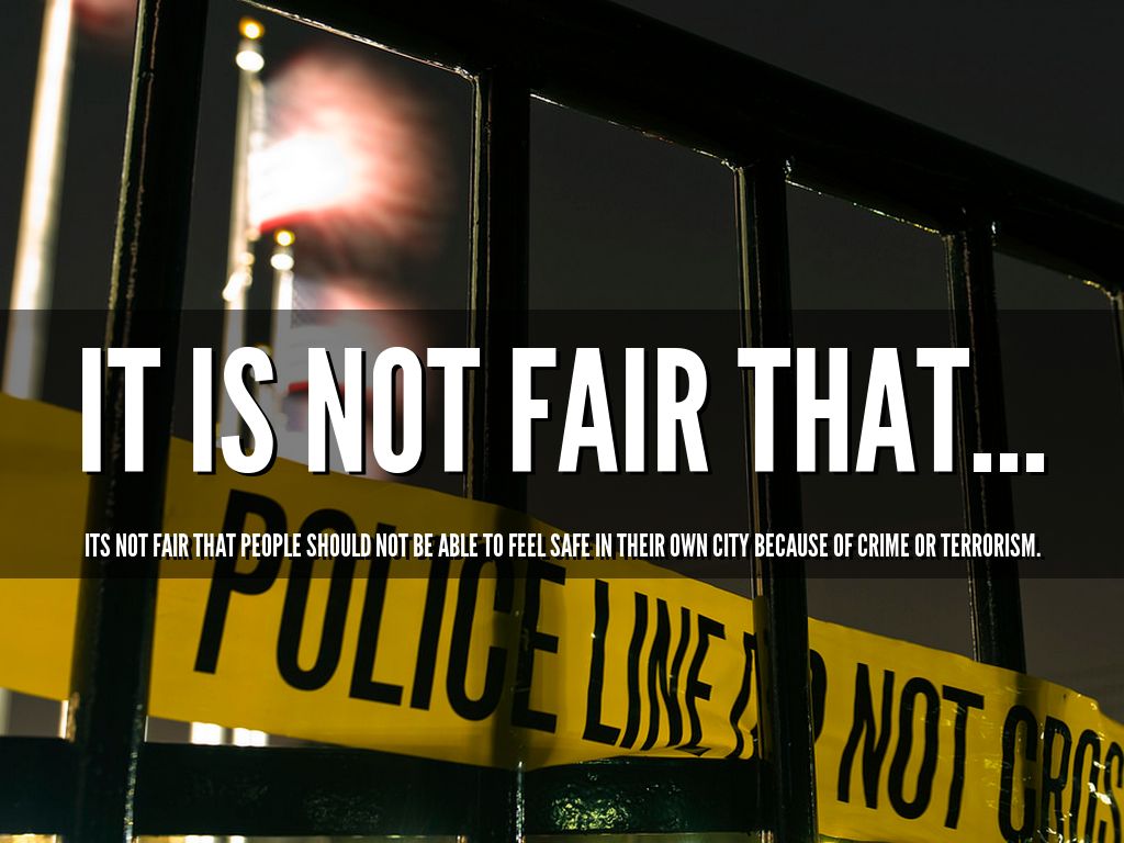 ITS NOT FAIR THAT PEOPLE SHOULD NOT BE ABLE TO FEEL SAFE IN THEIR OWN CITY BECAUSE OF CRIME OR TERRORISM.