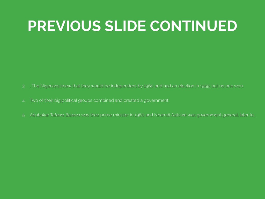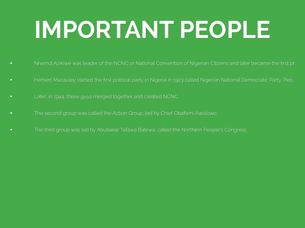 The third group was led by Abubakar Tafawa Balewa, called the Northern People’s Congress.